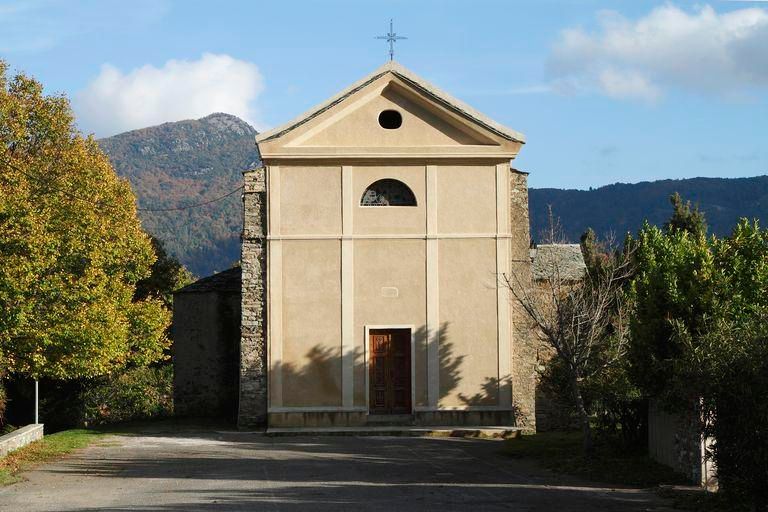 Construit en schiste et couvert de lauzes, le bâtiment est ainsi typique des petites églises de Castagniccia.